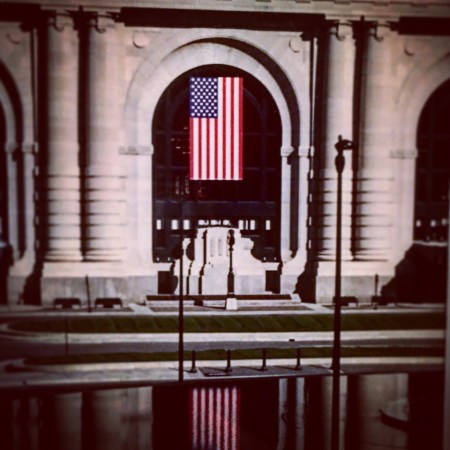 Fall 2001: the Star Spangled Banner hangs at KCMO Union Station