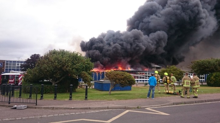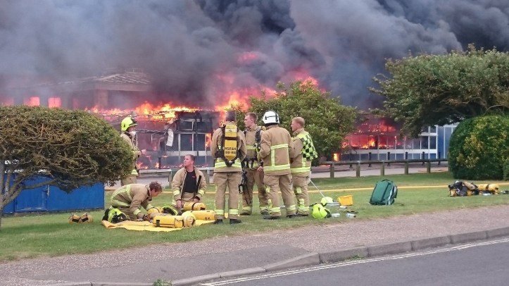 UK: Firefighters remained on the scene today of a large school fire in seaside township of Selsey. Hot spots amid the collapsed structure were being blacked out as the operations would down for an estimated 100!firefighters & 14 engines that tackled the blaze.