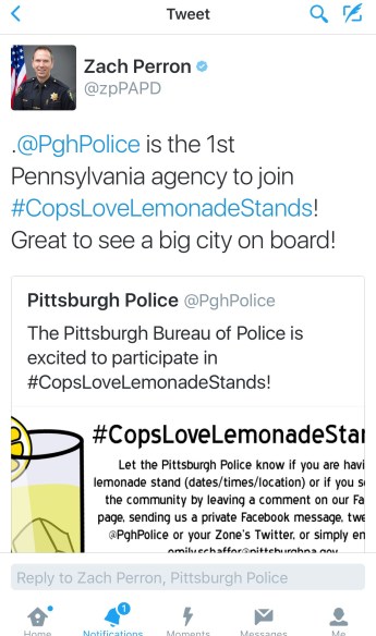 The above is one of the earliest #CopsLoveLemonadeStands tweets we can find. The simple and successful idea brings police into communities they otherwise may not visit and to families, children and individuals they may never have otherwise met.