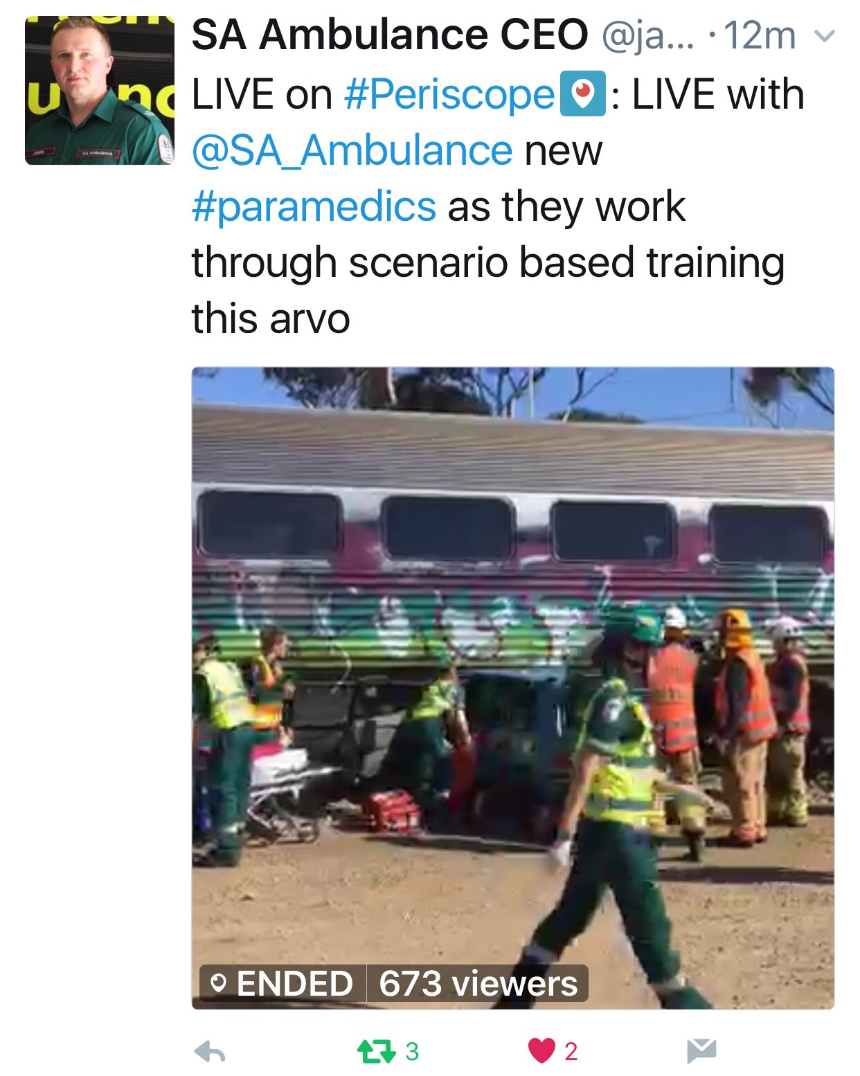 Australia: In what is thought to be an emergency services first, Jason Killens, CEO of the South Australian Ambulance Service (SAAS), did a “live” walk and talk through of a major training scenario today.