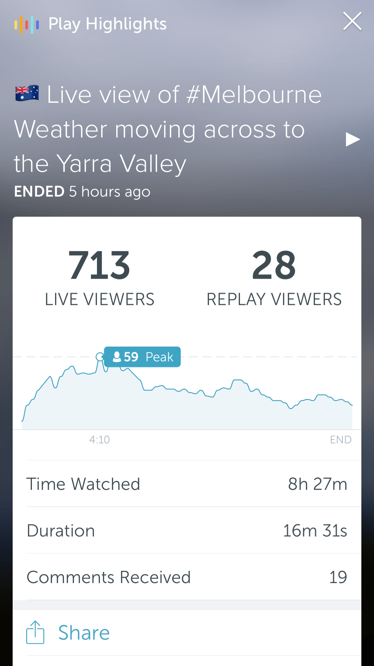 As a Periscope user, you get to see additional information. We did an informal broadcast on Melbourne’s weather ahead of further rain expected this week. You can watch this here. We did our broadcast a few hours before Jason and here it the extra detail you get to see as a user: