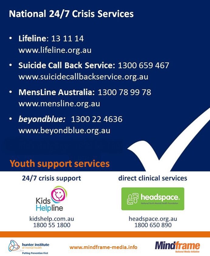 24/7 help is also available. In the USA call LifeLine 800273talk. In Australia, services are: