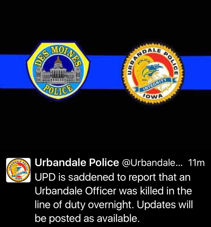 Update 6:30 am USCT: Reports are sadly coming in of two police officer line off duty deaths in Iowa.