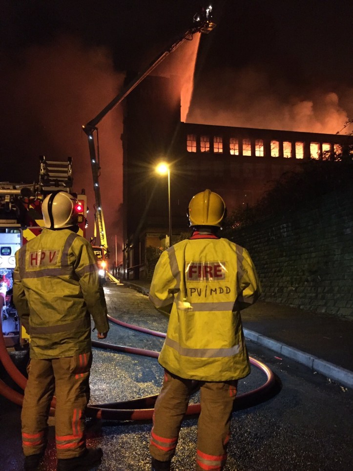 Crew are fighting the fire from the outside of the mill, following on from a serious collapse of part of the building earlier today.