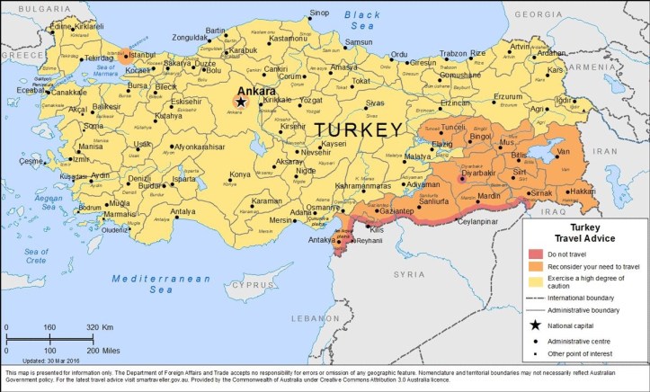 The Australian Government does not provide this advice lightly. The travel advice for Turkey, like all travel advisories, remains under close review and represents our best assessment of the safety and security environment that Australian travellers will experience in Turkey.